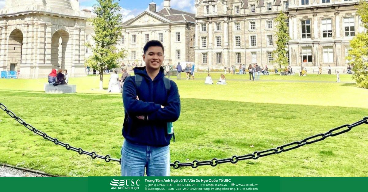 - Hành trình Thạc sĩ tại Ireland: Hiện tại, nam sinh đang theo học chương trình Thạc sĩ về Phân tích Kinh doanh tại Trinity College Dublin – một trong những đại học lâu đời và danh tiếng nhất thế giới.